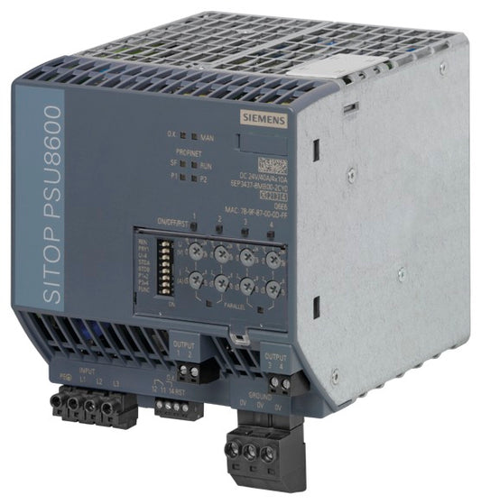 SIEM 6EP3437-8MB00-2CY0 SITOP PSU8600 40 E: 3 AC 400-500V A: DC 24V/40A/4x 10A Lieferantenartikelnummer: 6EP34378MB002CY0EAN:...