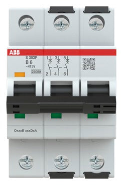 ABB S303P-B6 Sicherungsautomat B-Char.25kA 6A 3P 2CDS383001R0065