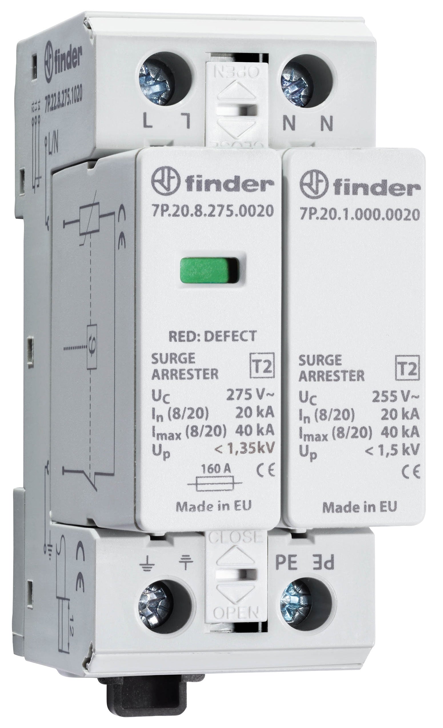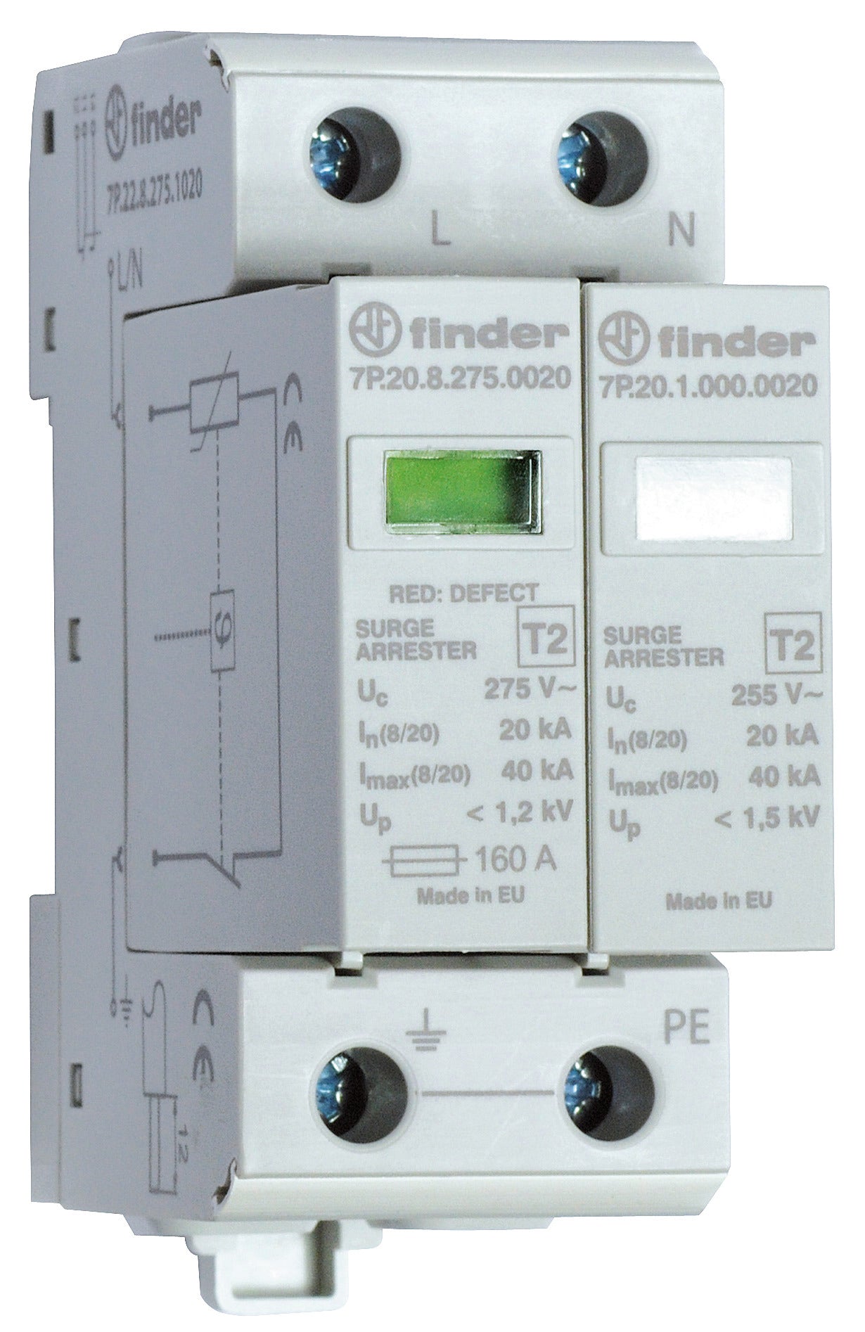 Finder 7P.22.8.275.1020 ÜSS-Ableiter Typ2 Varistor+Funkenst. 1ph.n TN-S+TT
