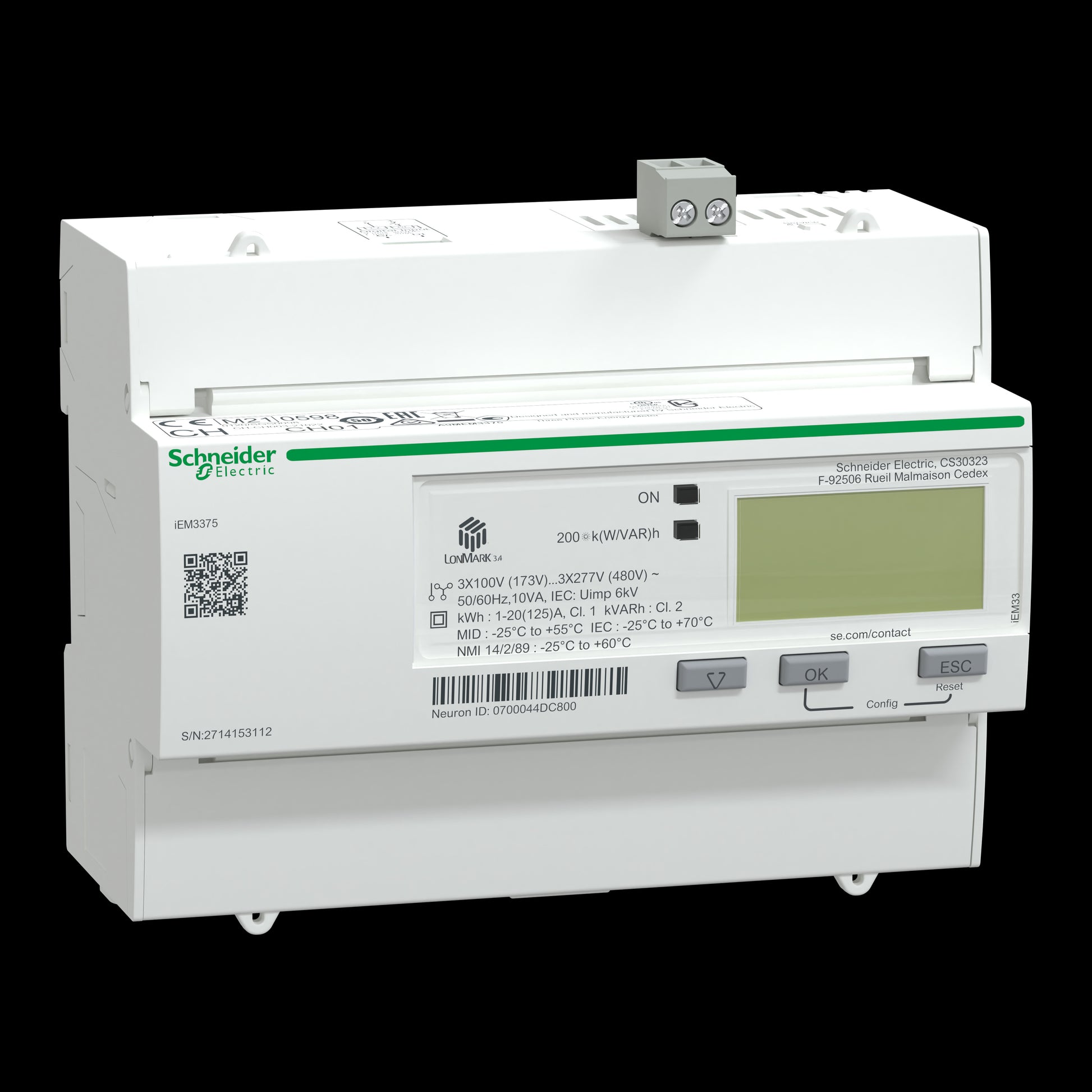 Schneider A9MEM3375 IEM3375 Energie- zähler 3ph. 125A LON 1E 4Tarife