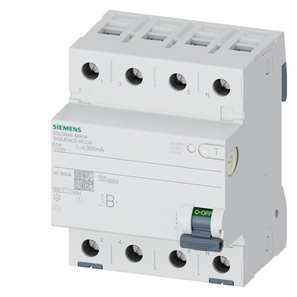 SIEM 5SV3646-5KK14 FI-Schutzschalter Typ B+ 63A 3+N-polig 300mA 400V 4TE selekti