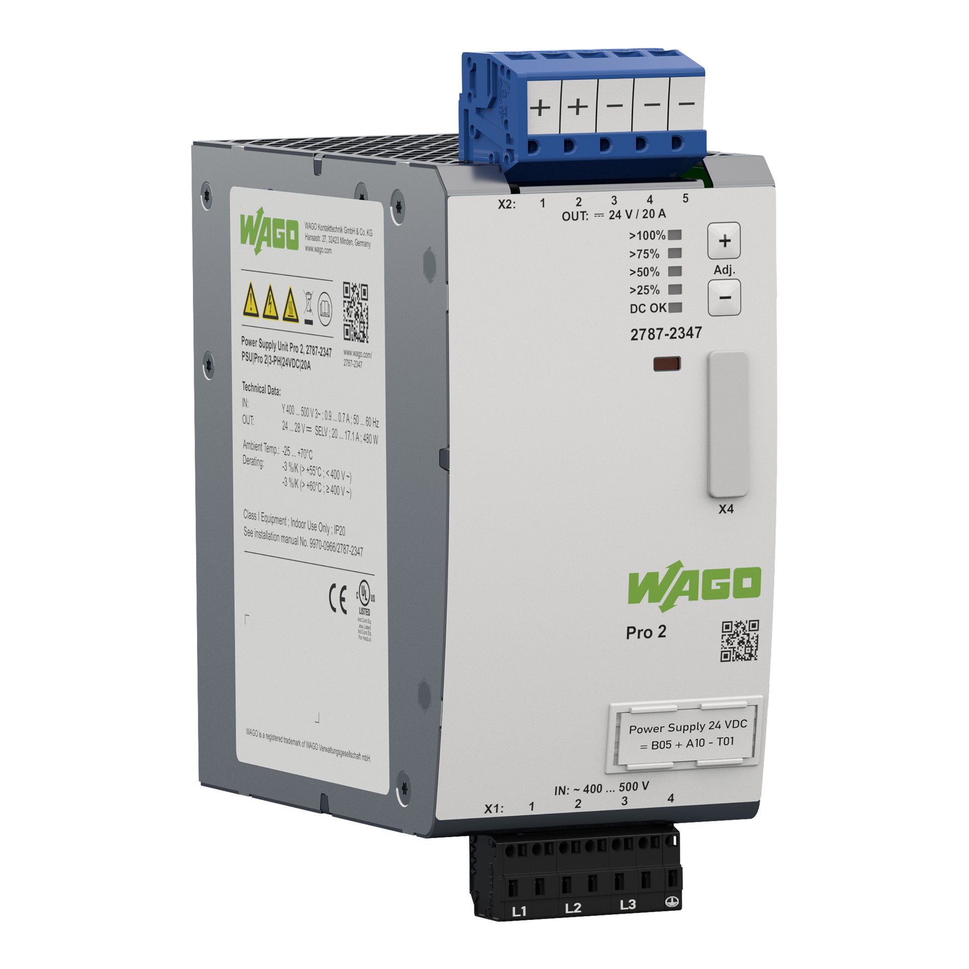 WAGO 2787-2347 Stromversorgung, Pro 2, 3-phasig, Ausgangsspannung DC 24 V
